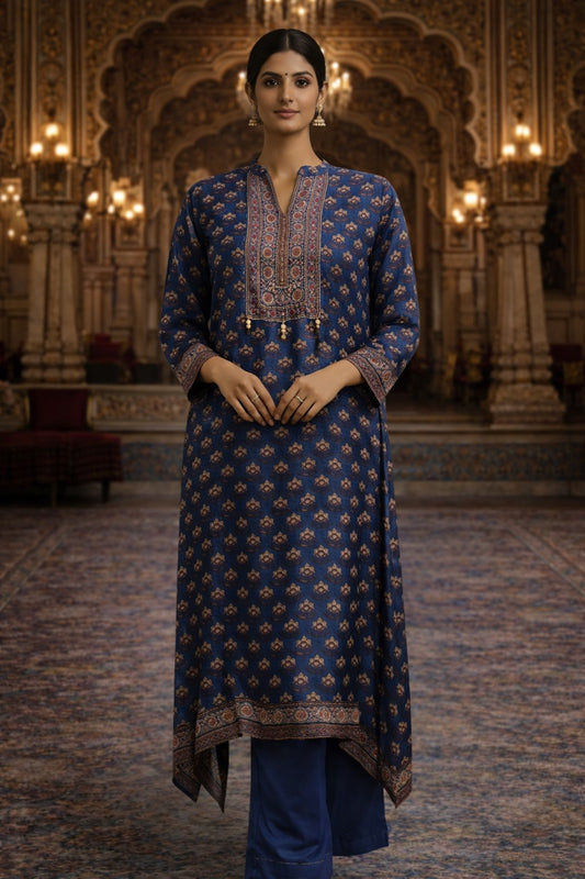 Navy Floral Contrast Pure Bemberg Modal Kurta Set