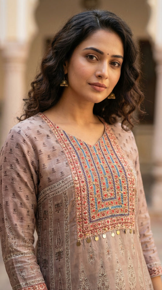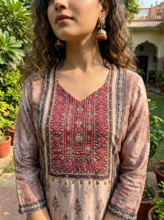 Maroon & Gold Zardosi-Inspired Yoke Kurta Set